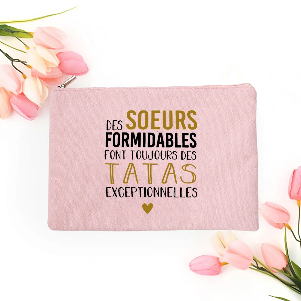 Cette trousse de maquillage imprimée est le cadeau idéal pour remercier une marraine, une tata ou une sœur. Avec son message attendrissant et son design épuré, elle allie utilité et touche affective. Parfaite comme annonce de grossesse ou petit présent attentionné. 💝